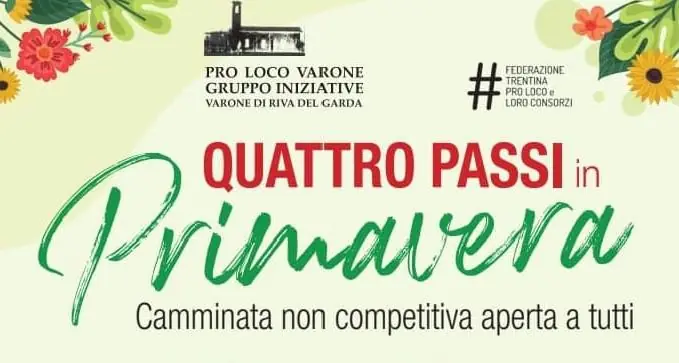 Quattro passi in primavera è la passeggiata organizzata per celebrare l’inizio della bella stagione con una giornata all’aria aperta all’insegna del movimento e della convivialità. L’evento si svolge al Parco del Pernone, a Varone di Riva del Garda, con partenza libera dalle 9.00 alle 10.00.
