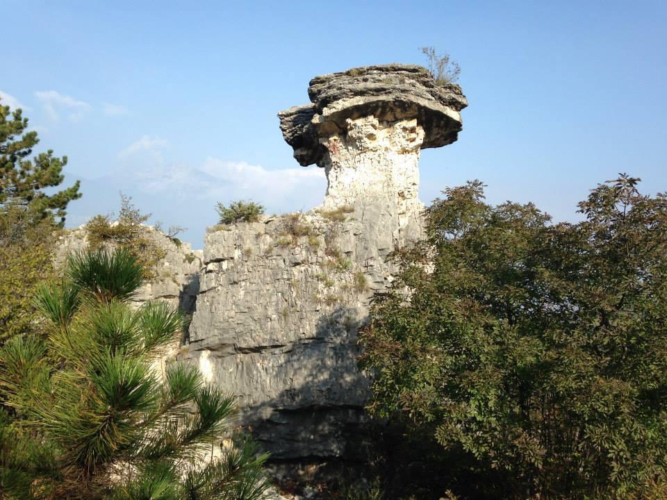 Facile escursione al Fungo di Albaredo, una peculiare formazione rocciosa sul Monte Zugna, per poi continuare ad anello verso la Sorgente del Prà e la Grotta di Damiano Chiesa.